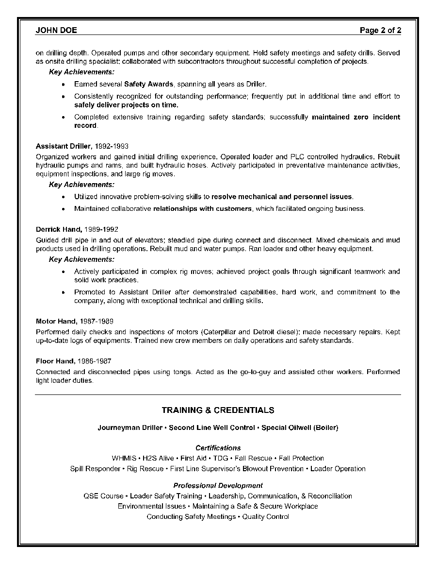 This oilfield consultant resume sample communicates John’s strong team building skills and knowledge of safety awareness. These are a couple of key skills to emphasize in a resume for any oil and gas position. By focusing on John’s outstanding accomplishments and skills in these areas—all of which are relevant to his job objective—he gained the competitive edge in the job search market.